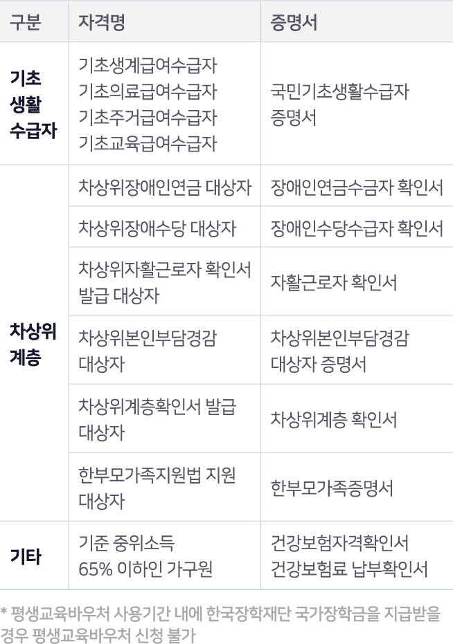 평생교육바우처 신청자의 자격 보유 여부 또는 소득기준 부합 여부 확인